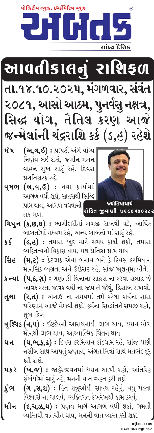 મંગળવાર, 14 ઑક્ટોબર, 2025