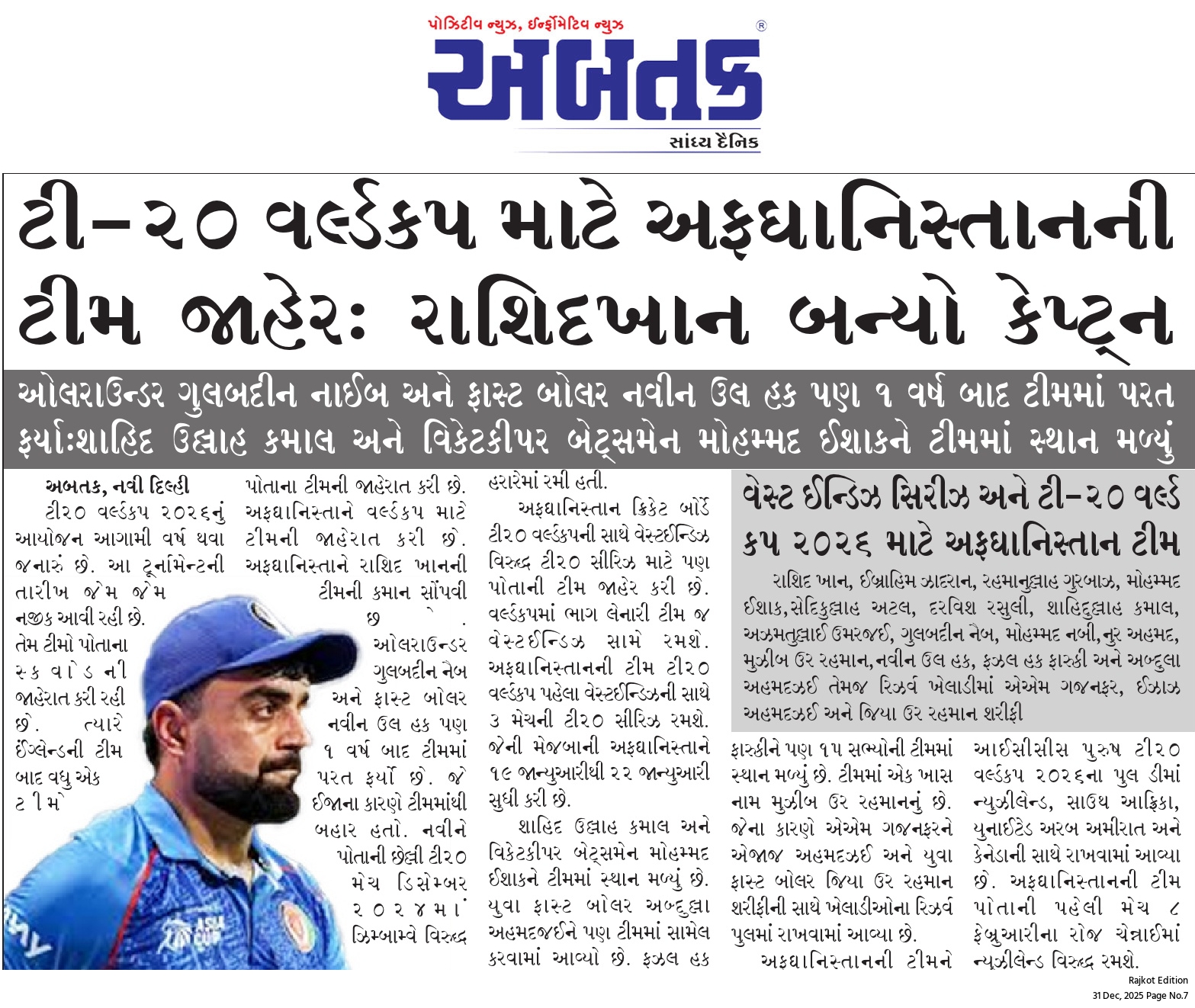 બુધવાર, 31 ડિસેમ્બર, 2025