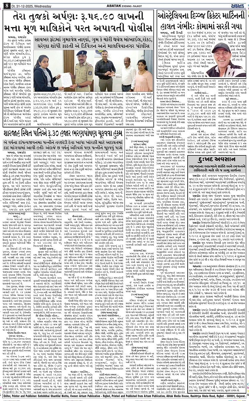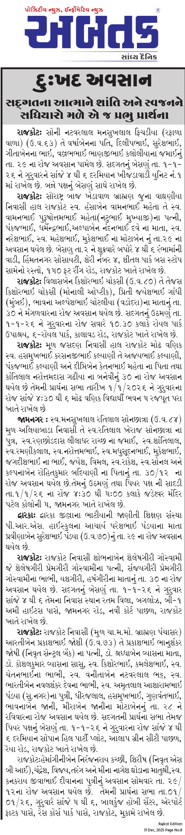 બુધવાર, 31 ડિસેમ્બર, 2025