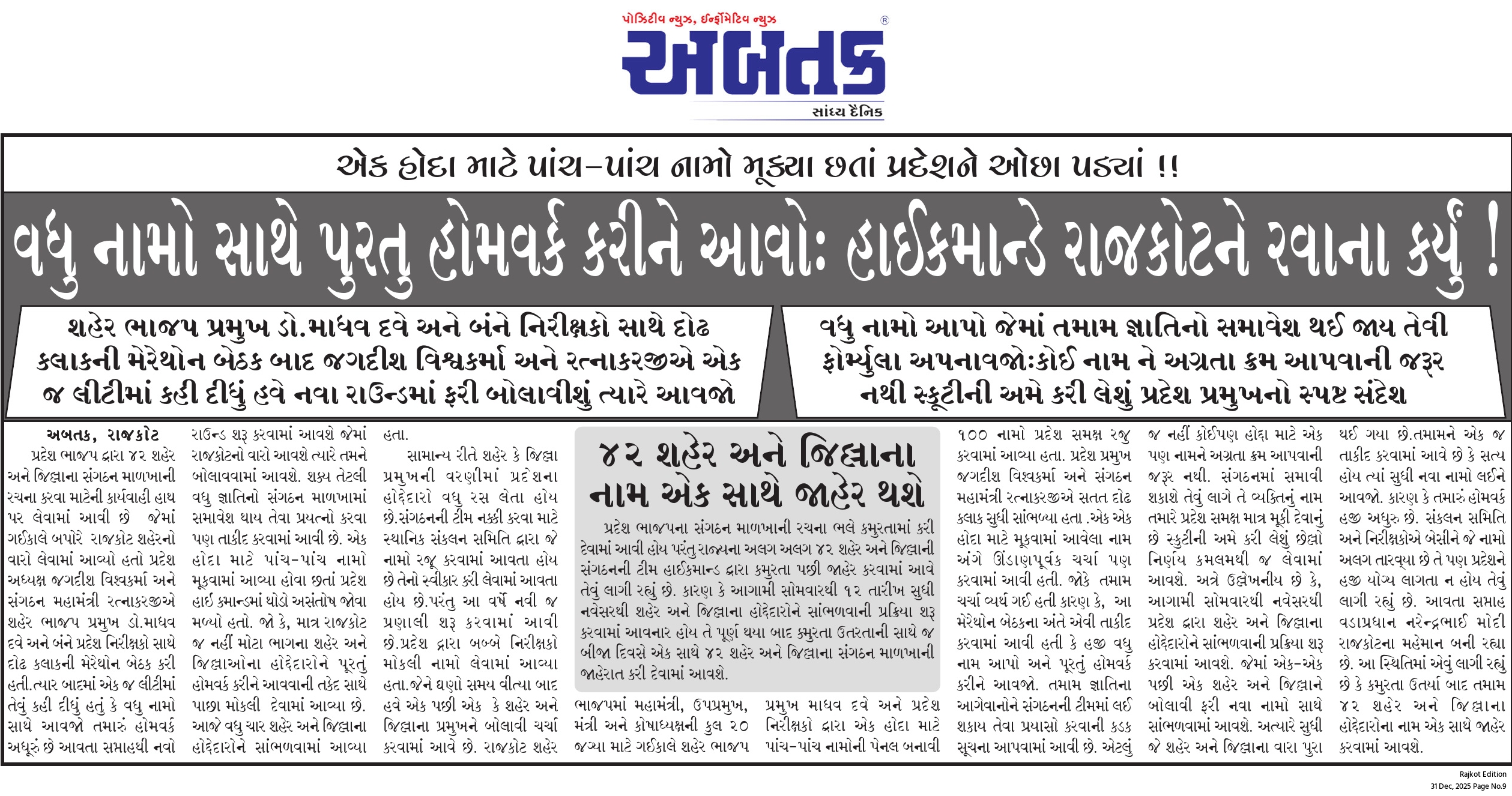 બુધવાર, 31 ડિસેમ્બર, 2025