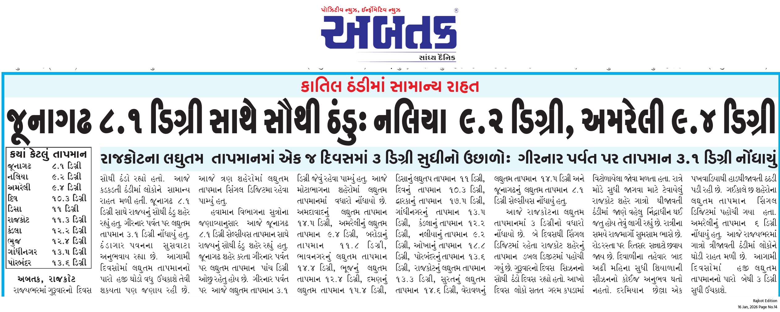 શુક્રવાર, 16 જાન્યુઆરી, 2026