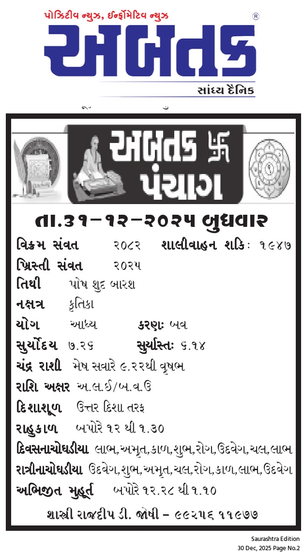 બુધવાર, 31 ડિસેમ્બર, 2025