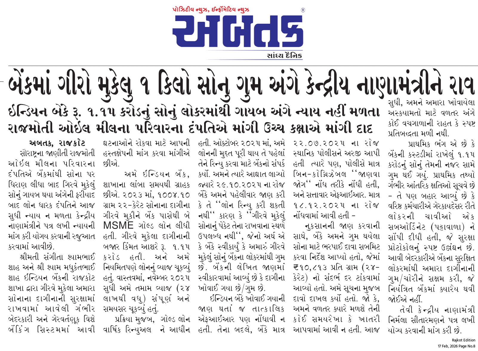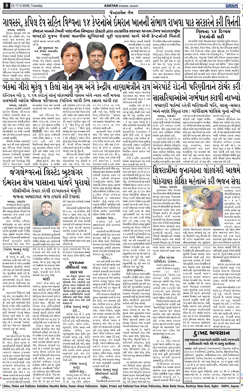 બુધવાર, 18 ફેબ્રુઆરી, 2026