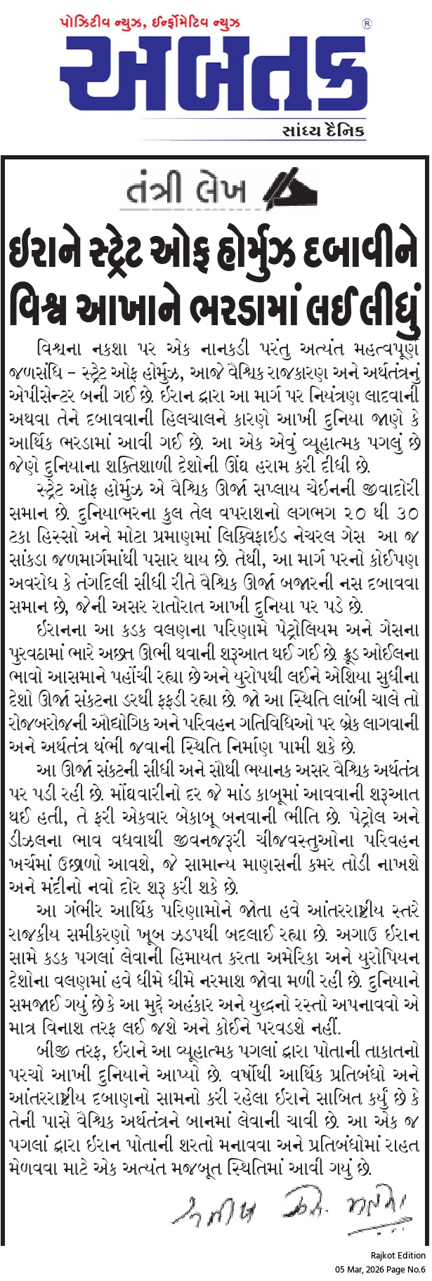 શુક્રવાર, 6 માર્ચ, 2026