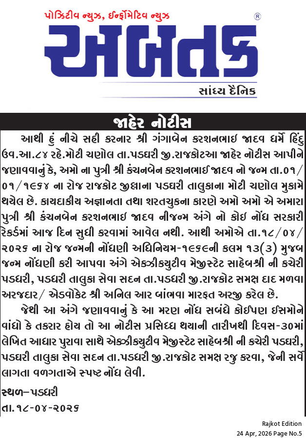 Friday, 24 Apr, 2026