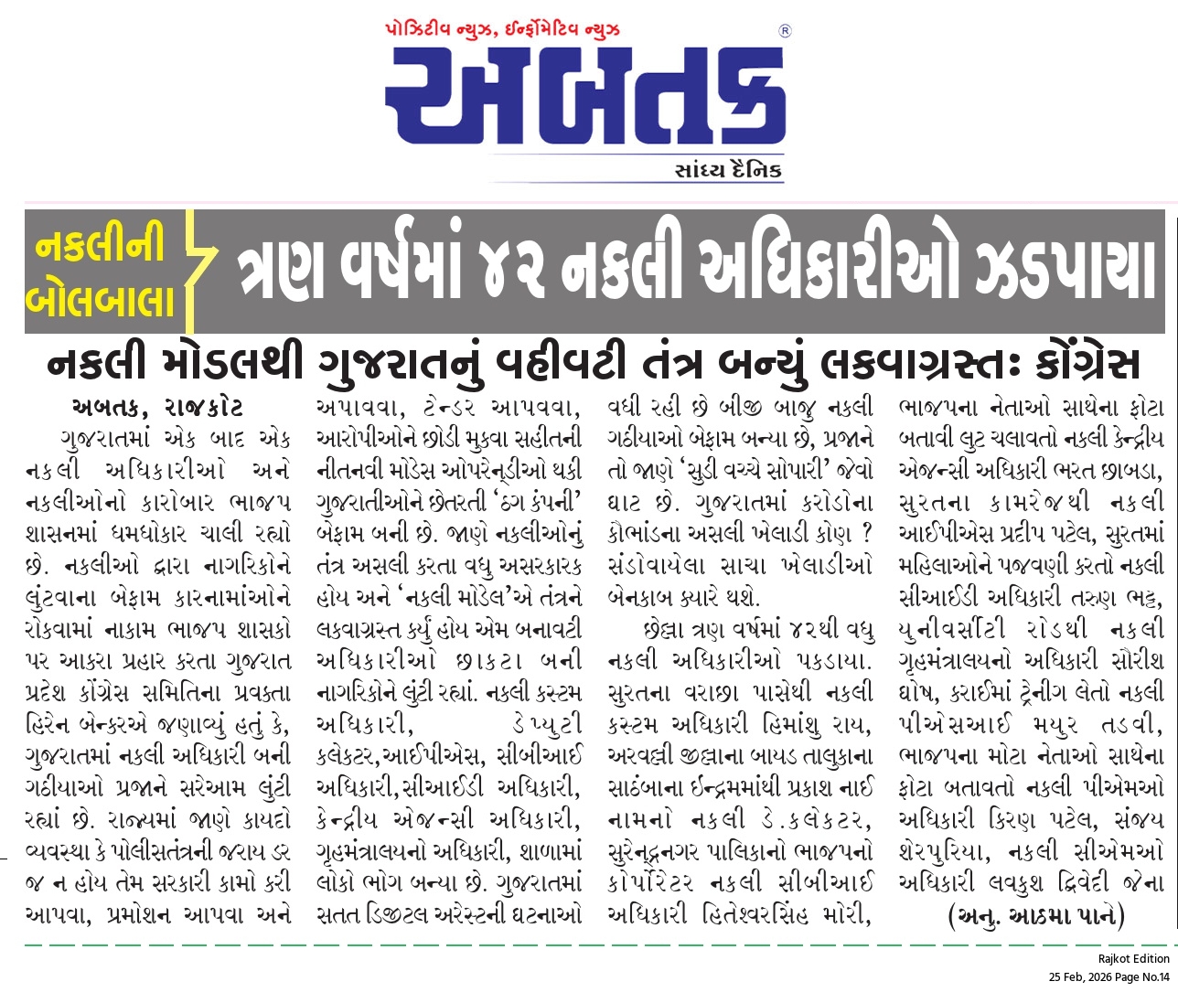 ગુરુવાર, 26 ફેબ્રુઆરી, 2026