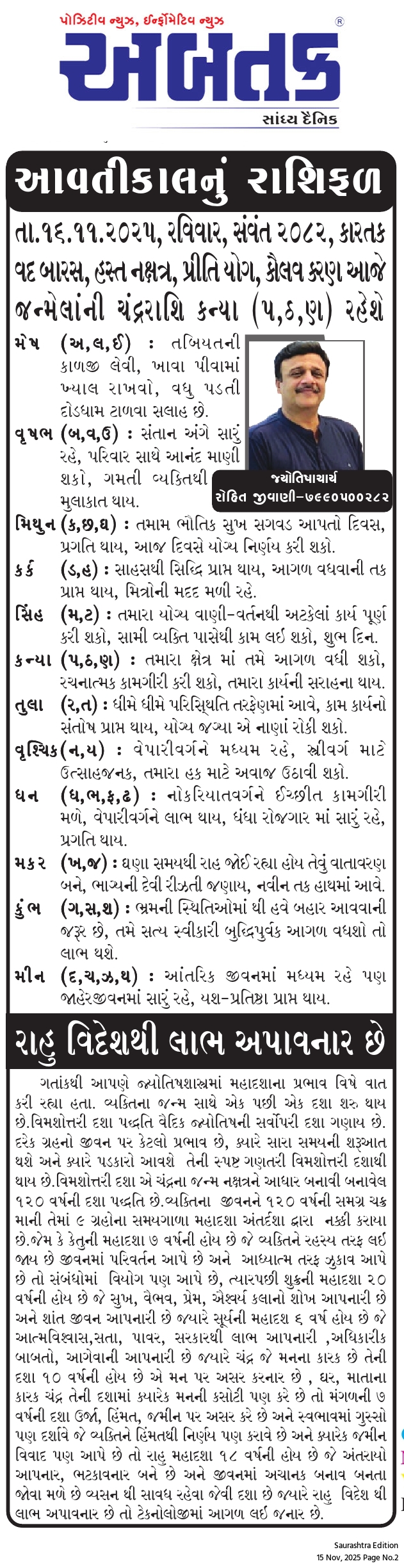 રવિવાર, 16 નવેમ્બર, 2025