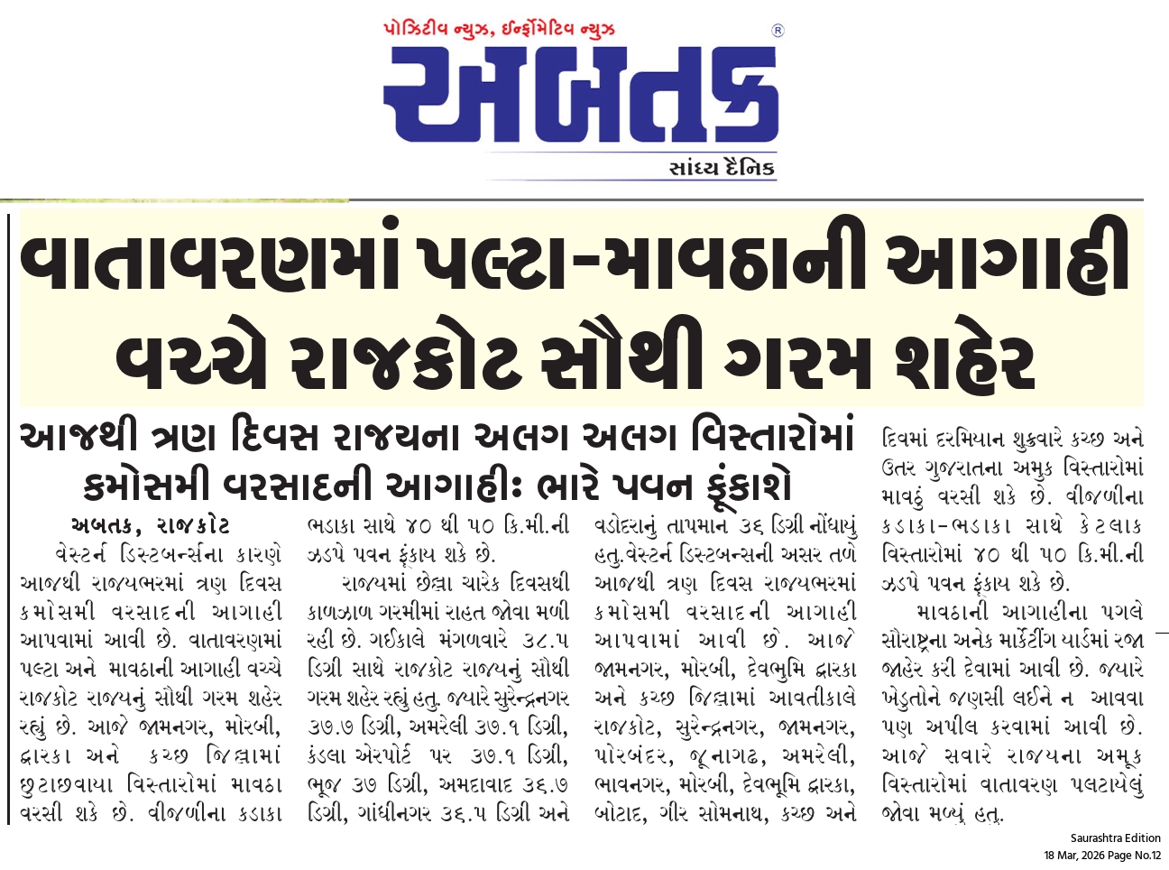 ગુરુવાર, 19 માર્ચ, 2026