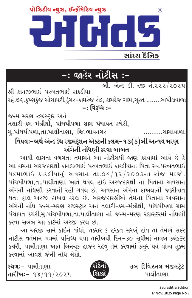 મંગળવાર, 18 નવેમ્બર, 2025