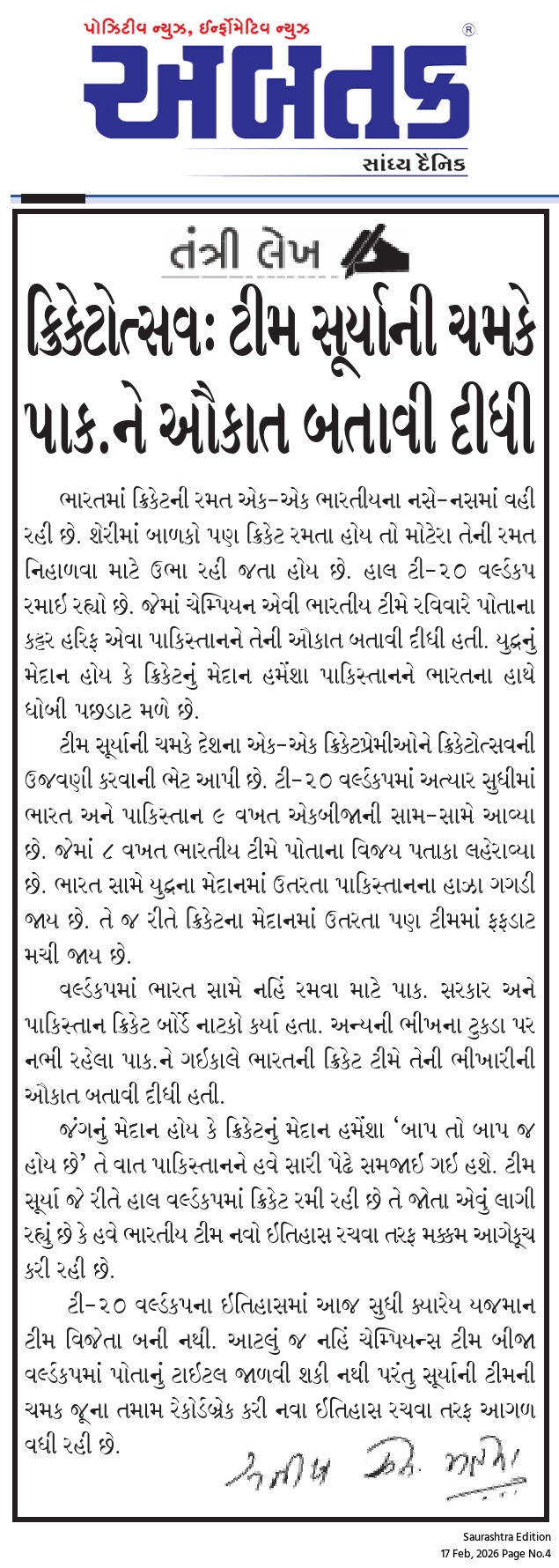 બુધવાર, 18 ફેબ્રુઆરી, 2026
