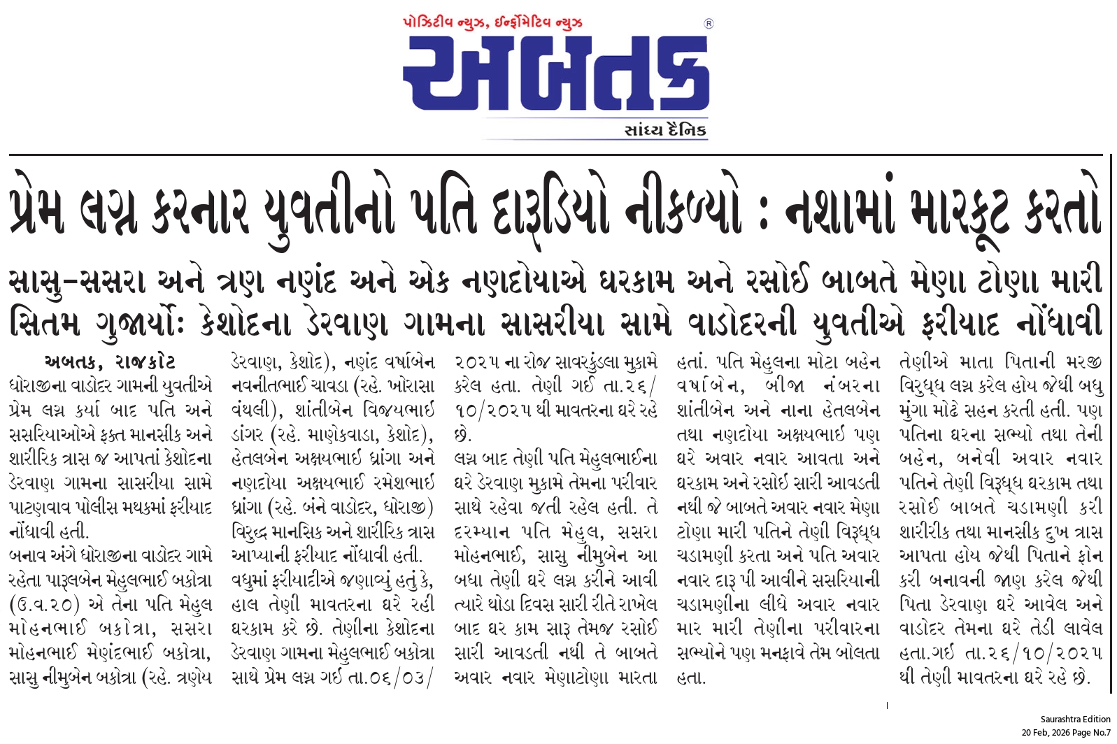 શનિવાર, 21 ફેબ્રુઆરી, 2026
