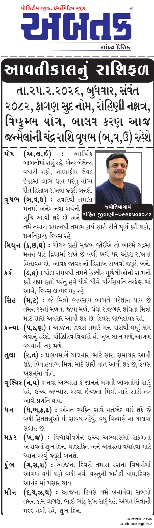 બુધવાર, 25 ફેબ્રુઆરી, 2026