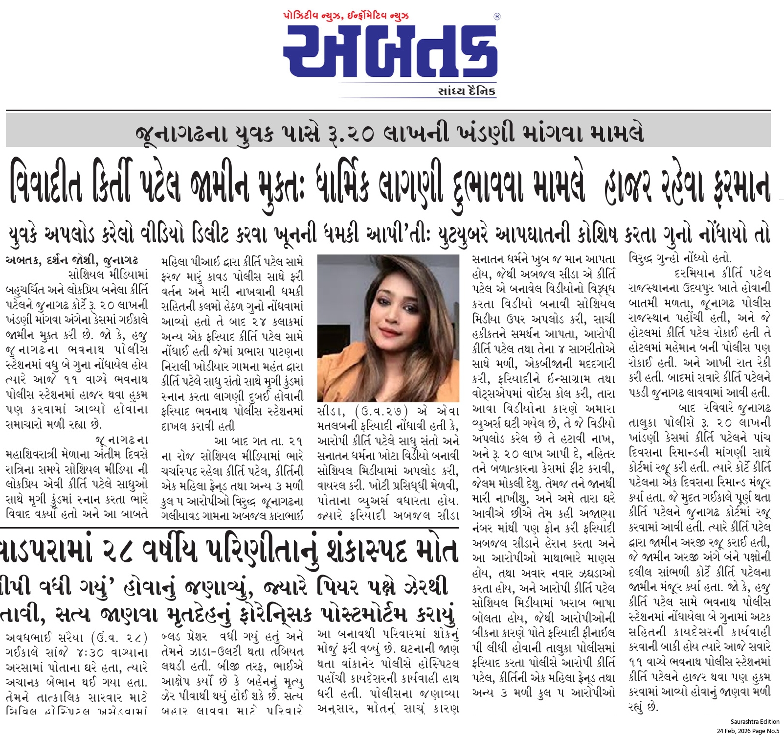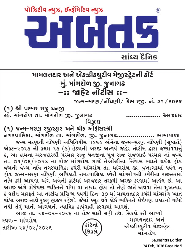 બુધવાર, 25 ફેબ્રુઆરી, 2026