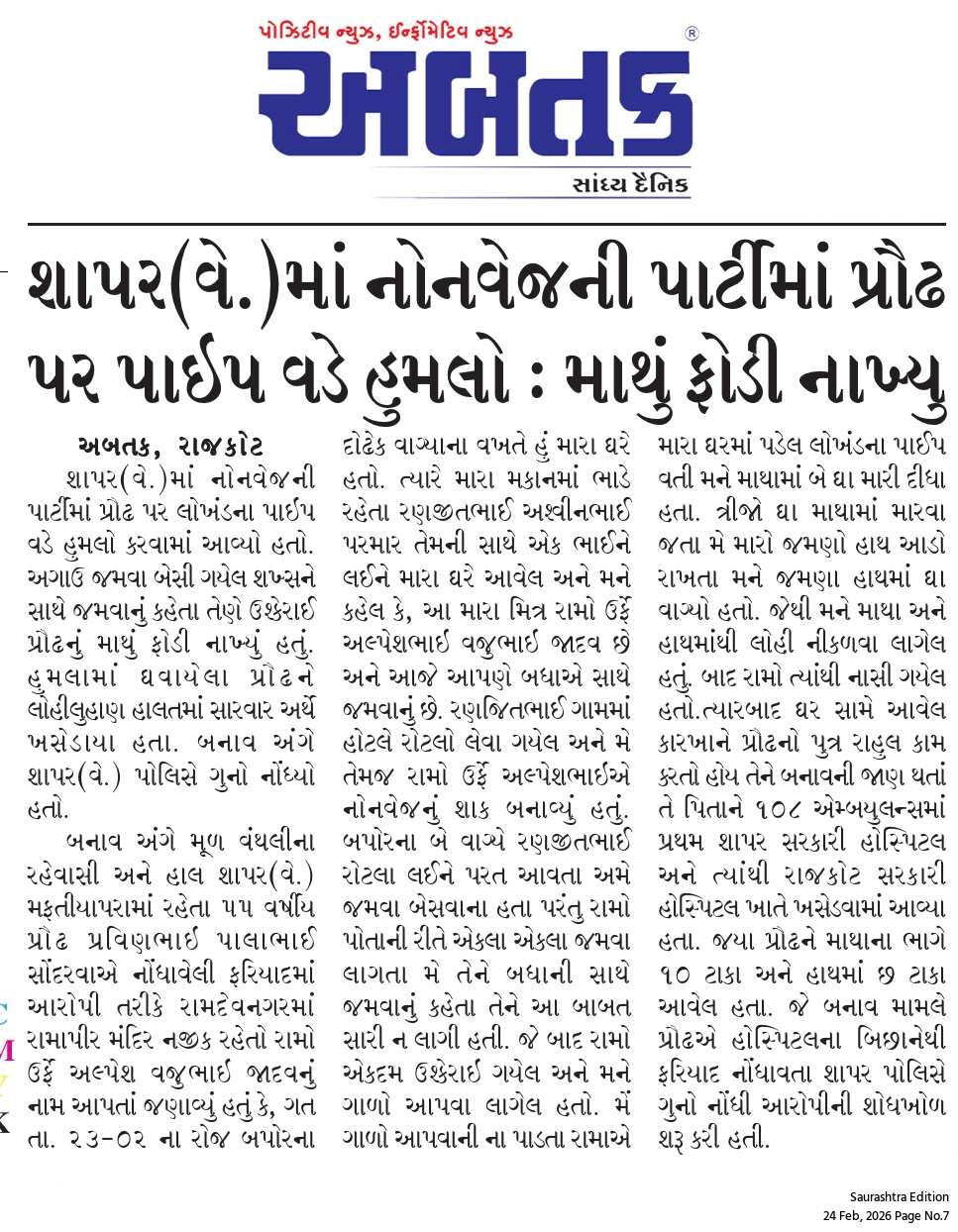 બુધવાર, 25 ફેબ્રુઆરી, 2026