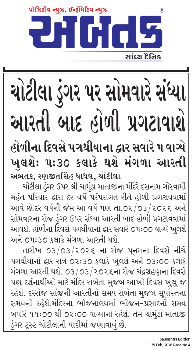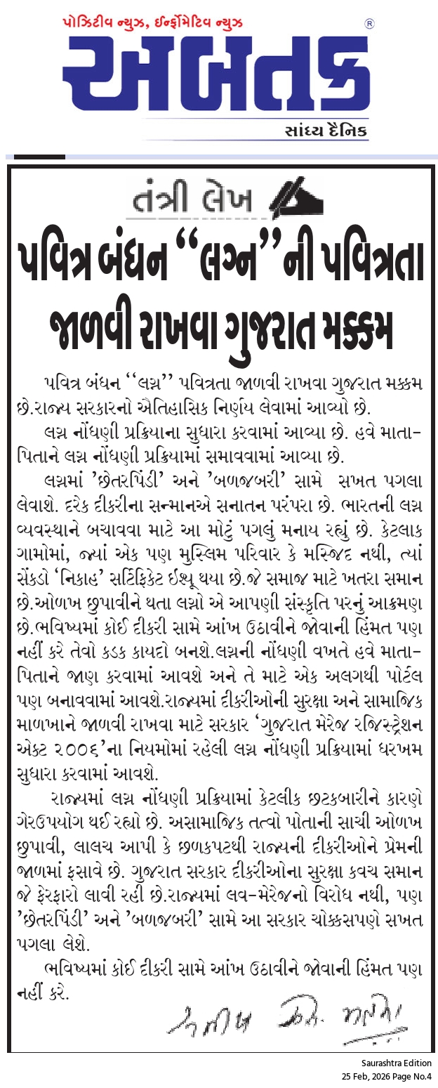 ગુરુવાર, 26 ફેબ્રુઆરી, 2026