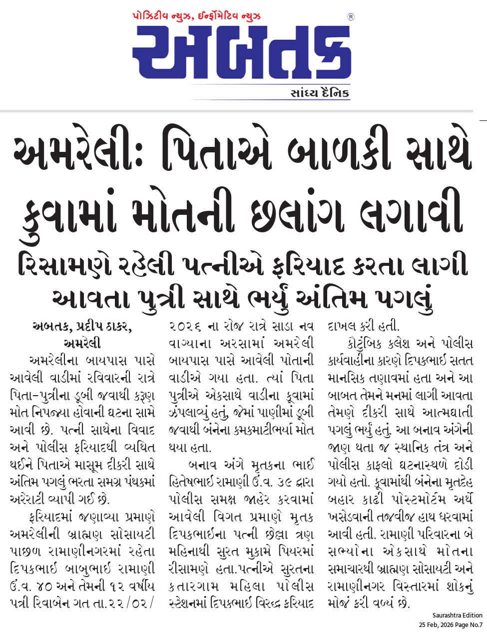 ગુરુવાર, 26 ફેબ્રુઆરી, 2026