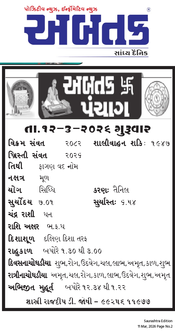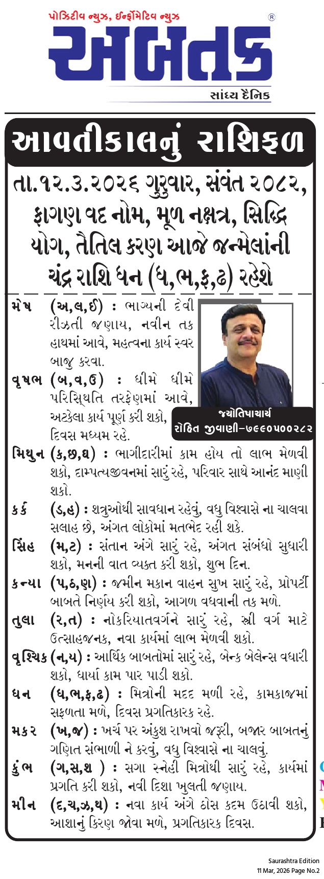 બુધવાર, 11 માર્ચ, 2026