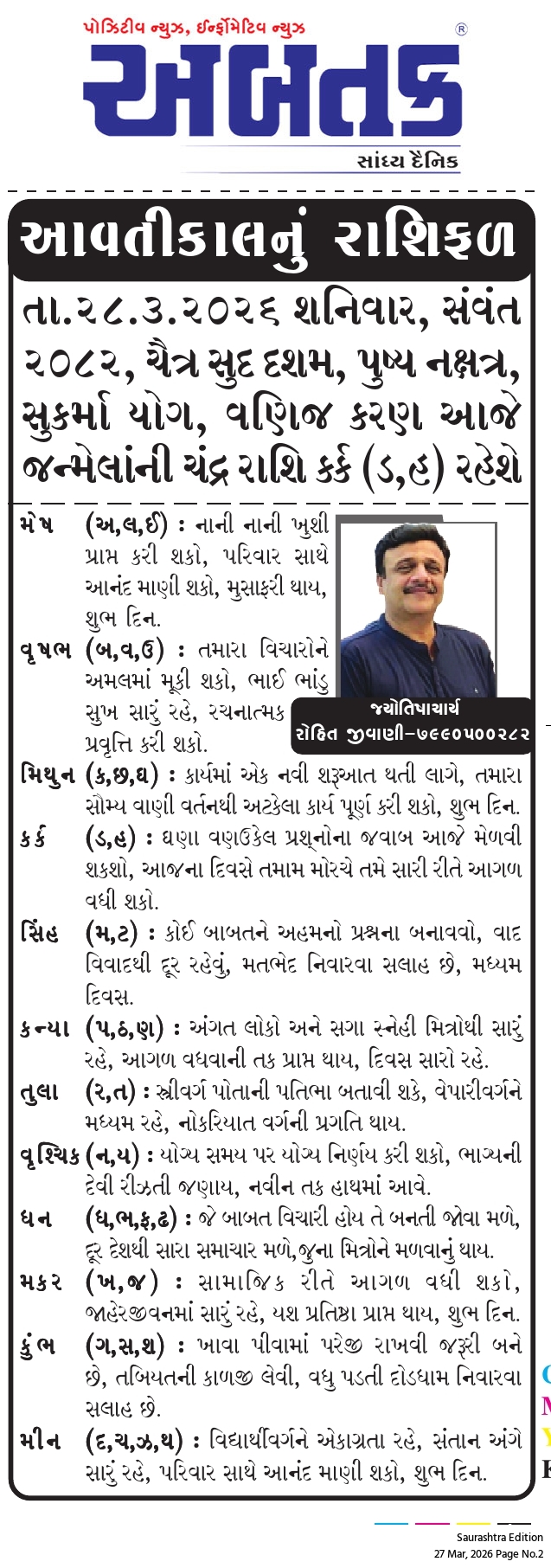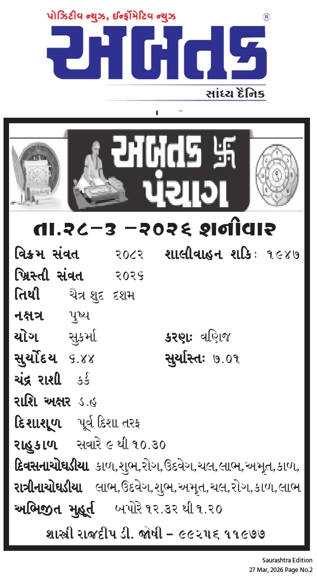 શનિવાર, 28 માર્ચ, 2026