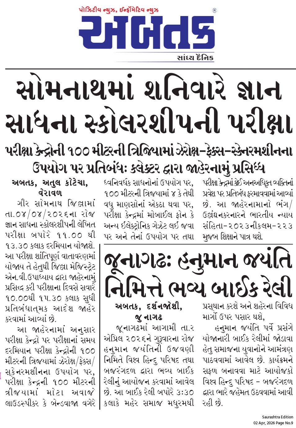 શુક્રવાર, 3 એપ્રિલ, 2026
