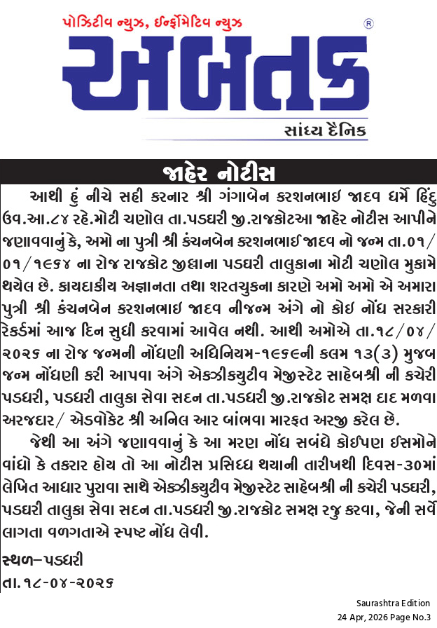Saturday, 25 Apr, 2026