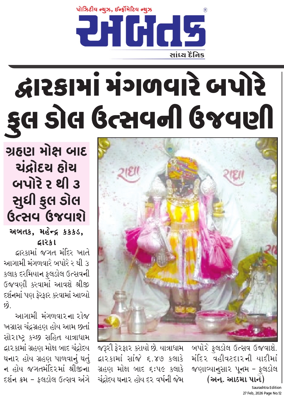 શનિવાર, 28 ફેબ્રુઆરી, 2026